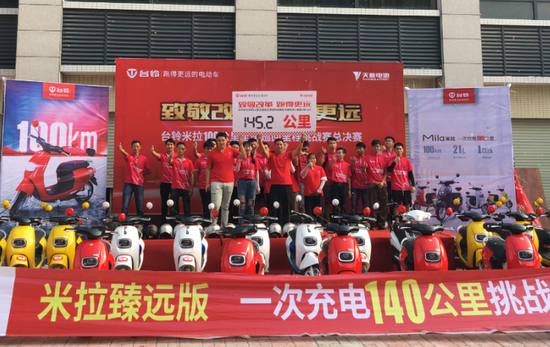 台铃集团品牌部门负责人表示,截止目前,60V22Ah电池的电动车续航里程达到145.2公里是台铃全国80场挑战赛中的首次,也是电动车行业有实测记录最远里程的一次。